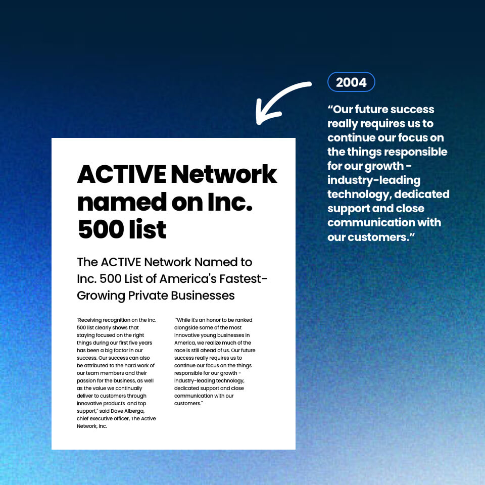 ACTIVE.com acquires Do It Sports, Inc. and Class Software Solutions. ACTIVE Network named on 500 List of America’s fastest-growing private businesses.