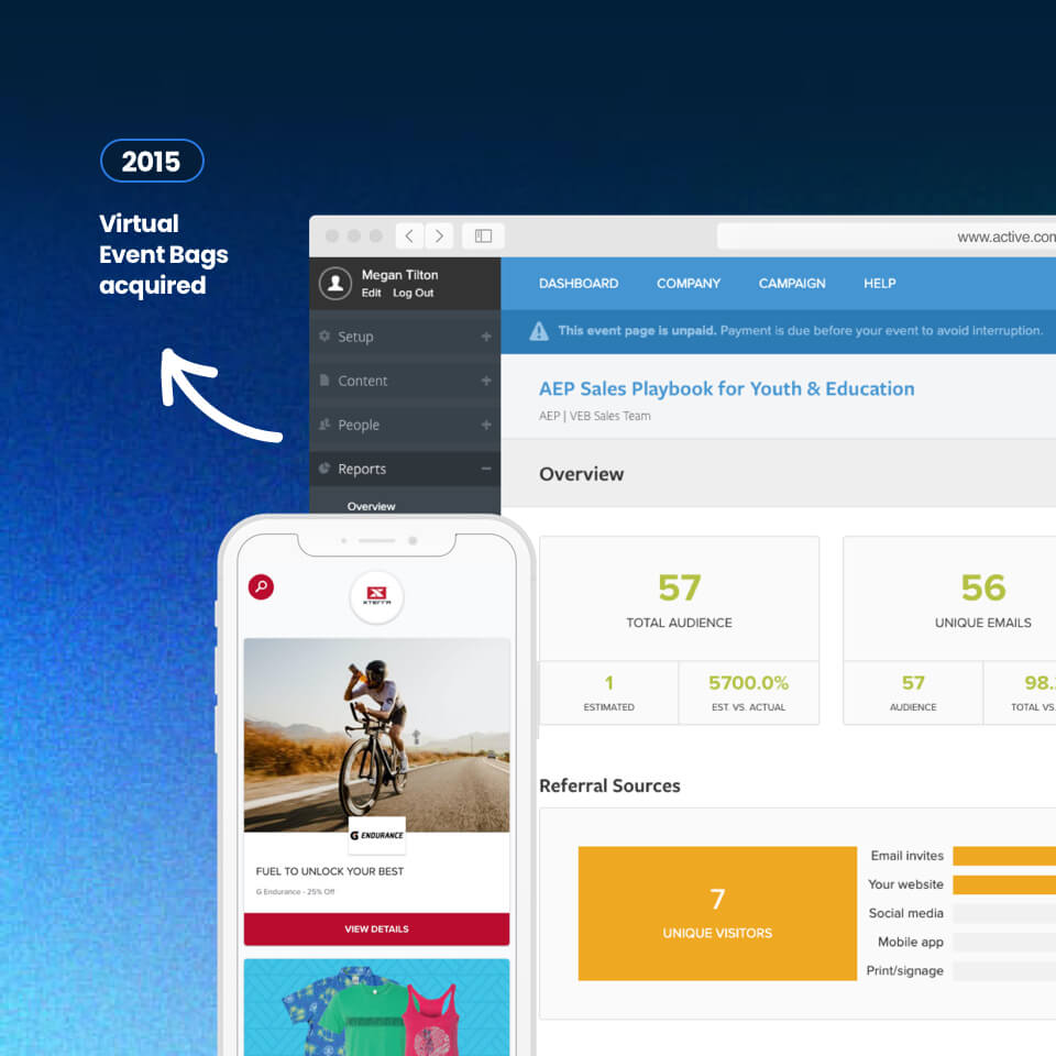 ACTIVE Network launches ACTIVEKids mobile app and introduces its first community-based fitness app, ACTIVEx. ACTIVE also acquires JumpForward and makes a significant investment into its Virtual Event Bags platform.