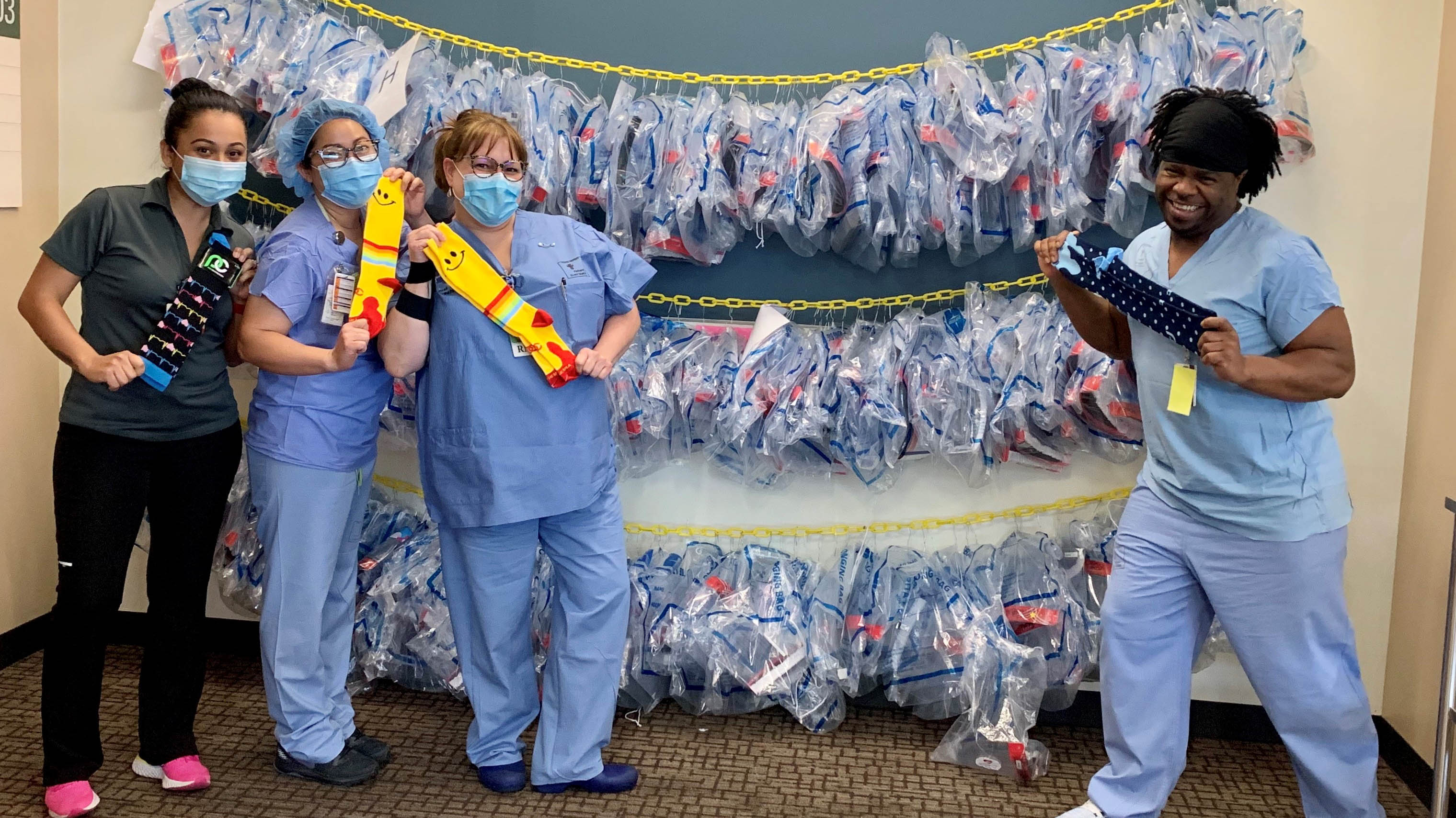 The needs of a community are diverse. From Personal Protective Equipment (PPE) to food and clothing, there are endless varieties of supplies you can donate to help meet these needs. When Eugene Marathon made the difficult decision to cancel their marathon, they surveyed their supplies and realized they had a stock PPE that could be donated to the local hospital. ACTIVE Network donated compression socks, usually used for marathon runners, to Parkland Hospital nurses to help them stay healthy while working long shifts. Check out the photos below.