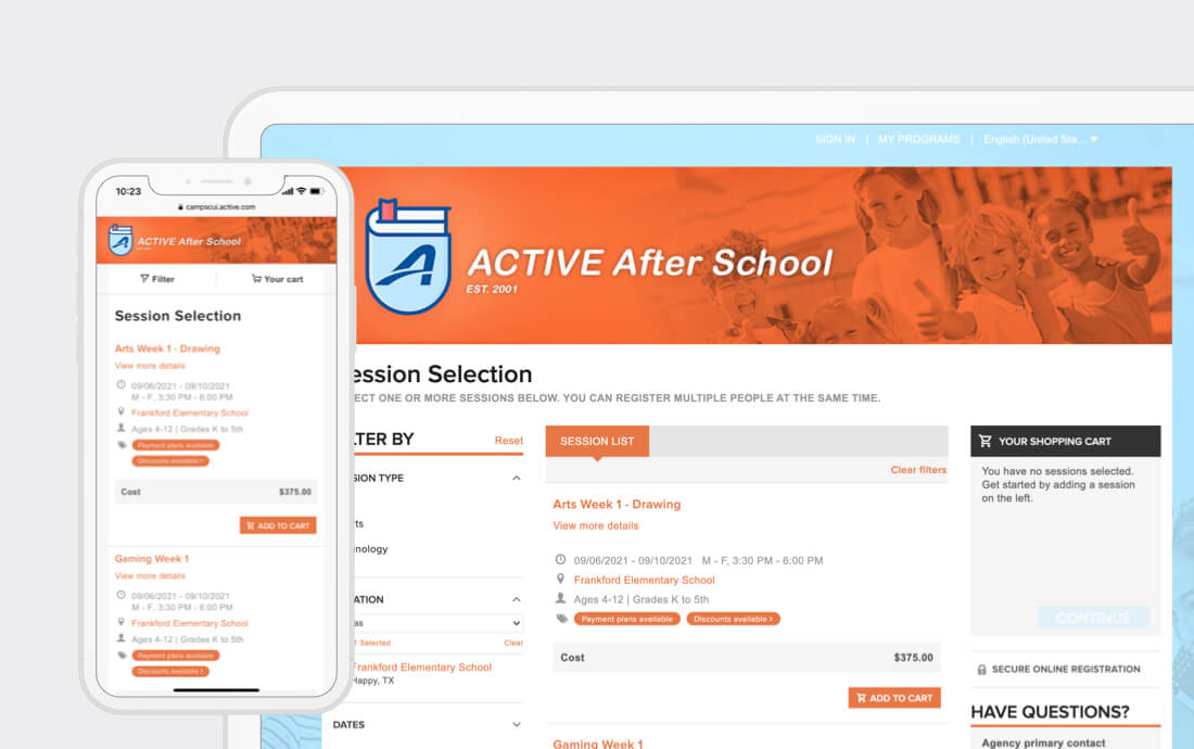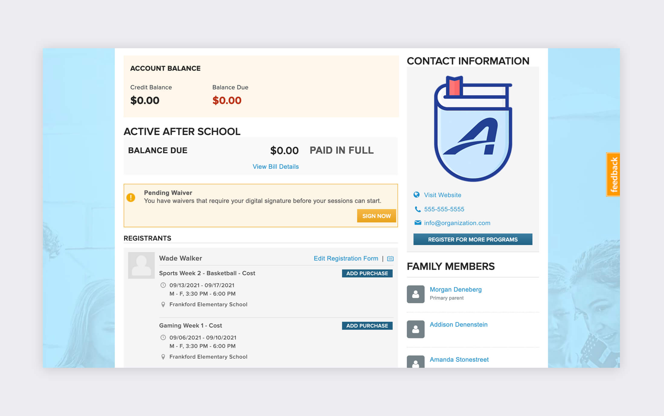 Offer parents the convenience of registering their children, filling out online forms and signing waivers whenever and wherever they want