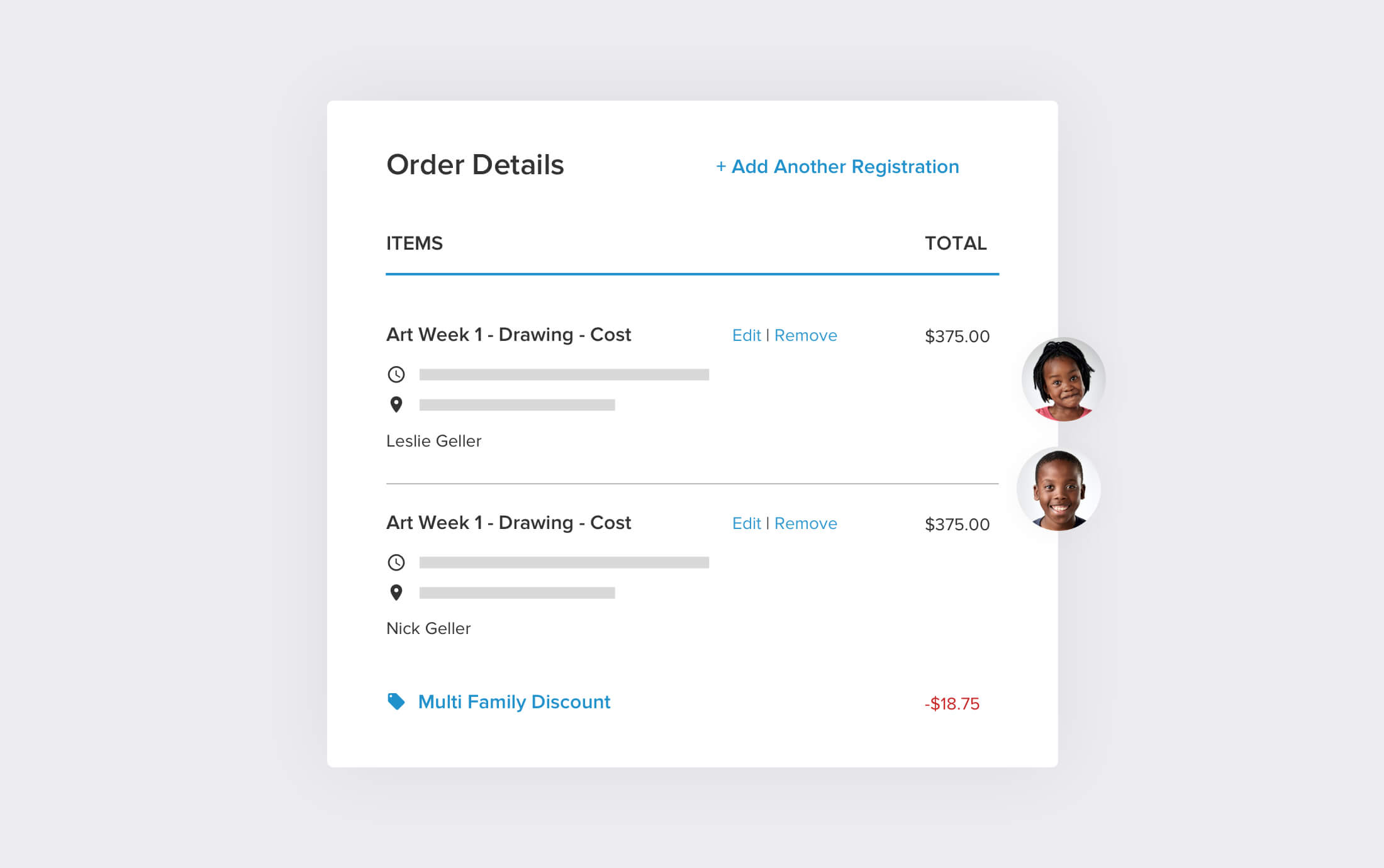 Families with multiple children can register them all quickly and easily.
