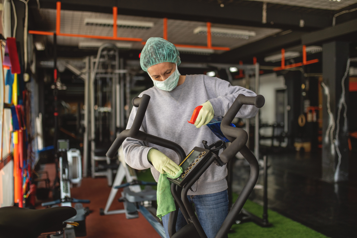 Consider Health Checks and Face Masks - Depending on your organization’s unique situation, you might want to conduct health or body temperature screenings before classes or events. But keep in mind that many people with COVID-19 don’t exhibit a fever. Some states are requiring face masks in public places while in other areas, masks are optional. If you ask members to mask up, keep in mind that a damp, sweaty face covering may not do a great job of filtering out virus particles. At the very least, you may want to require staff to wear masks and gloves or sit behind plastic partitions.