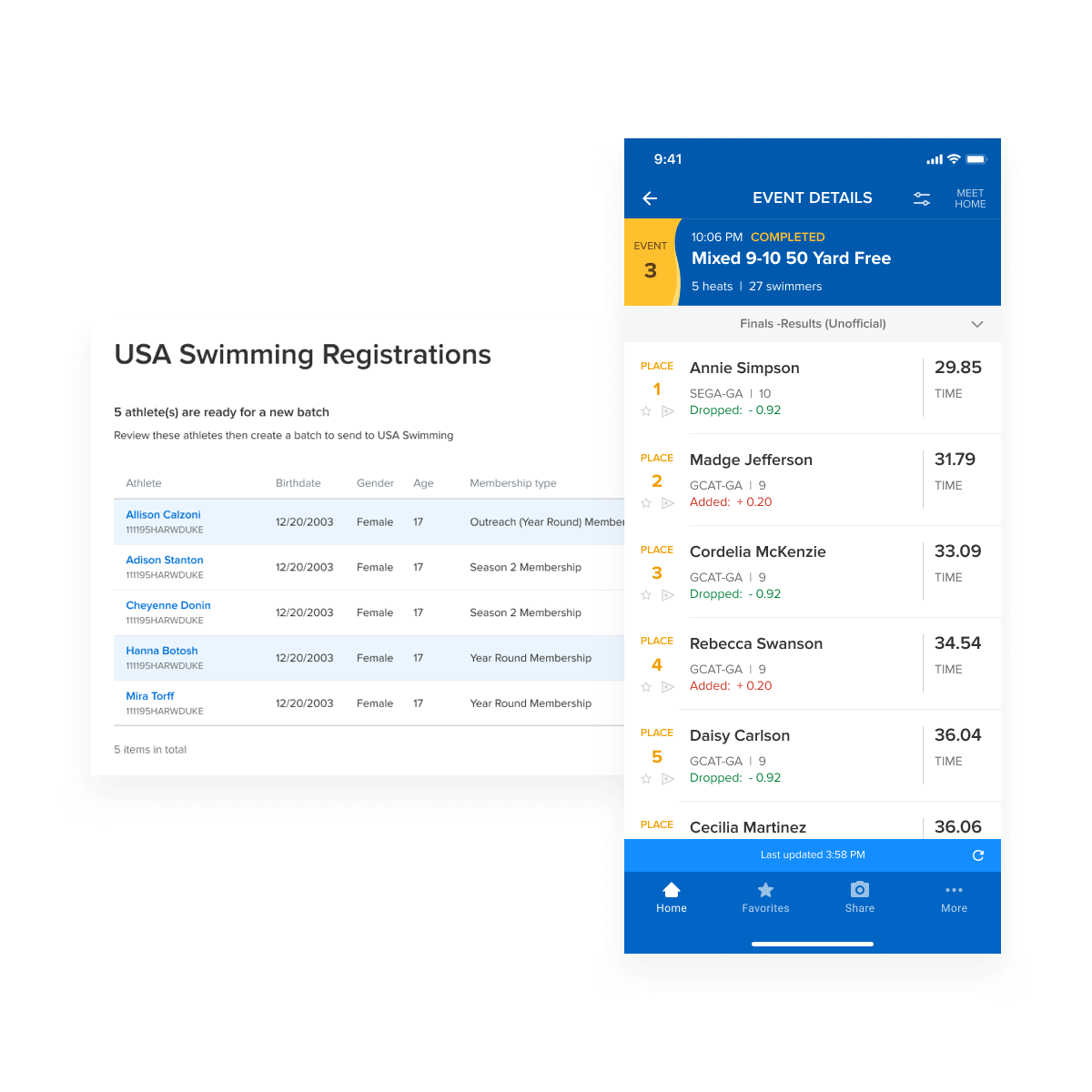 Make waves with first-class tools built for swim coaches to effectively manage teams and meets.